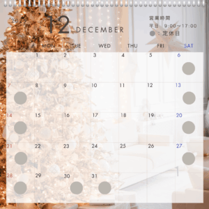 12月のショールーム営業カレンダーです🎄