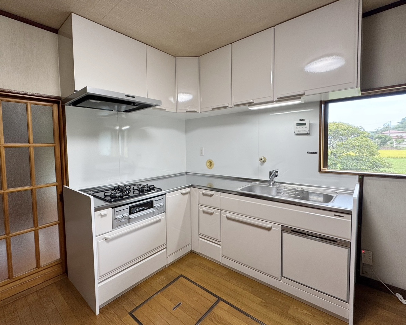 「エーデル」を採用し、汚れや傷に強く、お手入れしやすい仕様に。L型キッチンでも収納力を確保できる引き出し構成とし、初めて食洗機を設置することで、日々の洗い物の負担を軽減。使いやすさと家事らくを両立したキッチン空間になりました。
